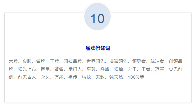 我們?cè)谥谱骶W(wǎng)站、小程序的商品標(biāo)題、頭圖、詳情頁(yè)、推文等商品信息的時(shí)候,除了制造賣(mài)點(diǎn)吸引消費(fèi)者外,還需要注意避開(kāi)一些廣告法禁止的宣傳用語(yǔ),避免中招。